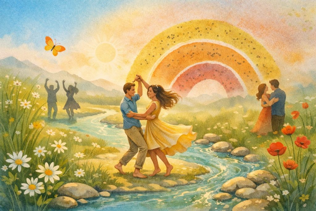 Dieser Abend verbindet Tanz, Begegnung und die Erforschung von Glück zu einem gemeinsamen Erfahrungsraum.